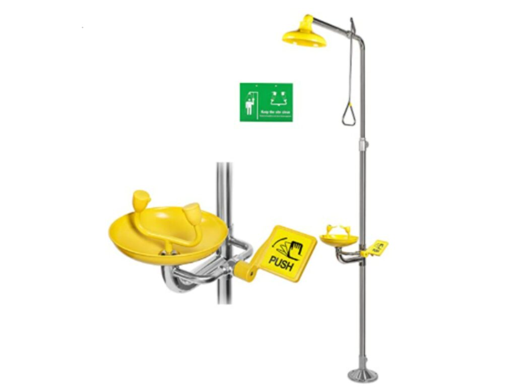 - Plumbed eye wash units – permanently connected to a potable water supply and preferred in fixed facilities because they can reliably meet flow, duration and water‑quality expectations.