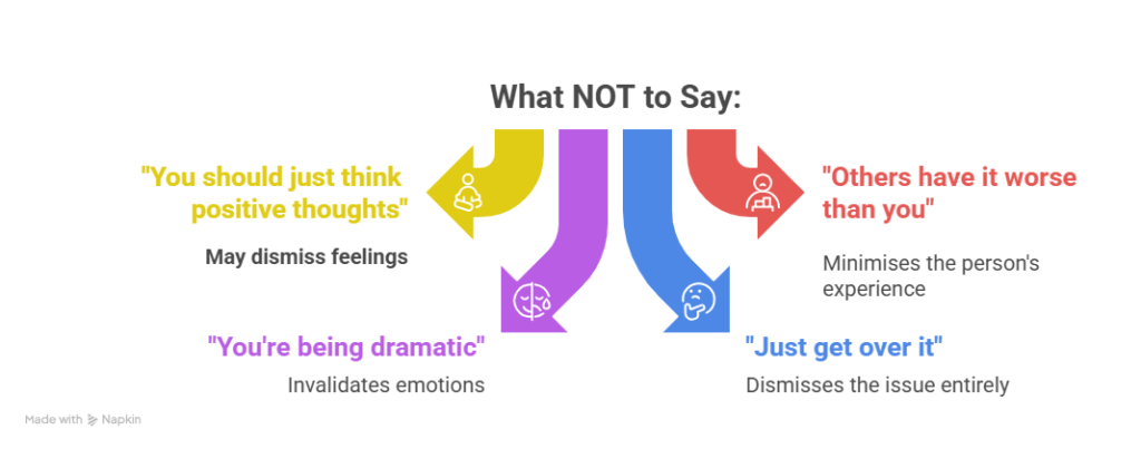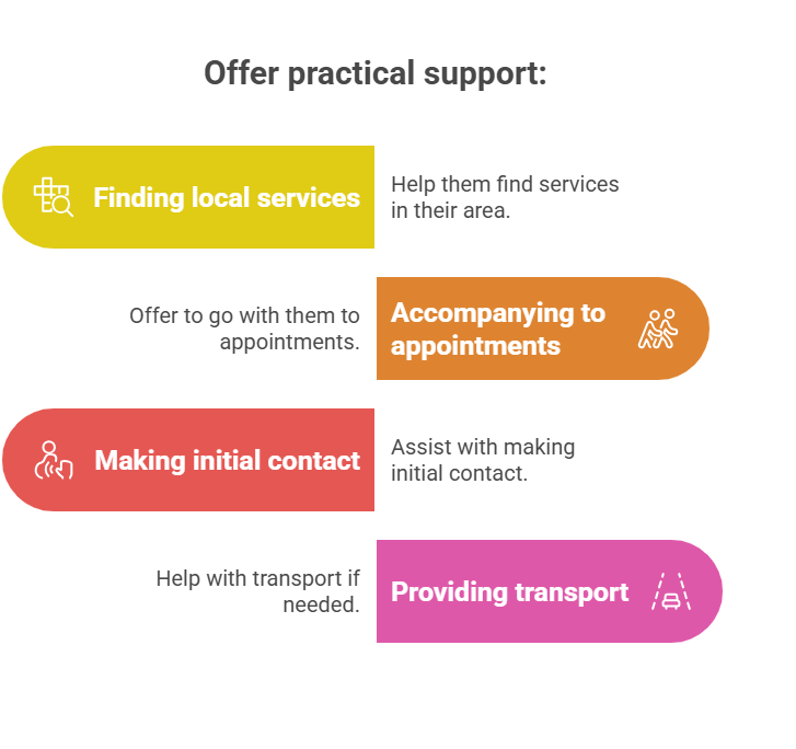 - Be culturally sensitive: experiences and help-seeking vary across communities; use respectful, non-judgemental language.