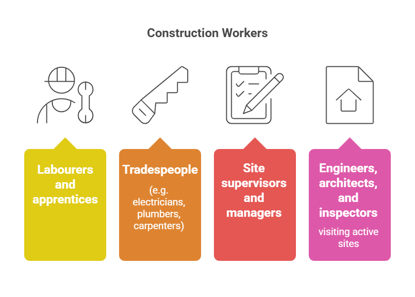 Anyone working on a construction site — including apprentices, tradespeople, labourers, supervisors, and even visiting professionals like engineers or architects — must hold a valid White Card.